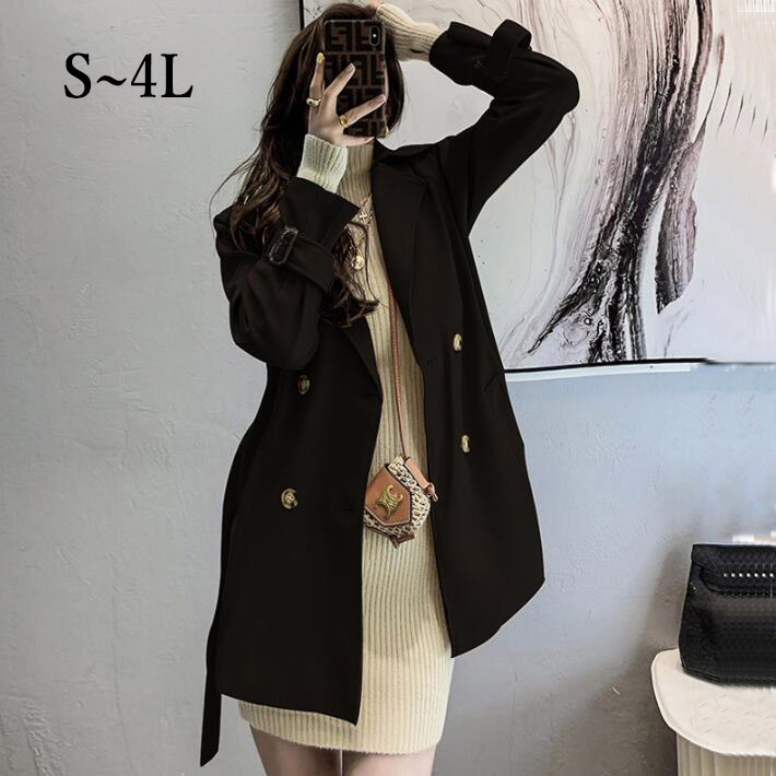 トレンチコート レディース スプリングコートコート 長袖トレンチ ショート丈 ライトアウターアウター リボンベルト付きトレンチジャケット シンプル大きいサイズ春秋SML2L3L4L