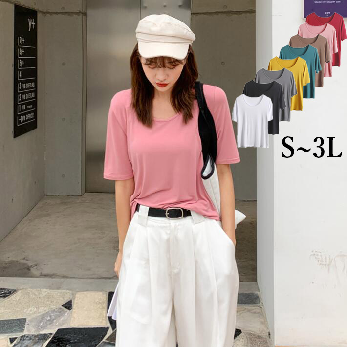 tシャツ レディース 半袖 カジュアルuネックオーバーサイズトップス 大きいサイズ肌着 重ね着 インナーウェアシンプル無地スポーツ大きいサイズS ML 2L3L