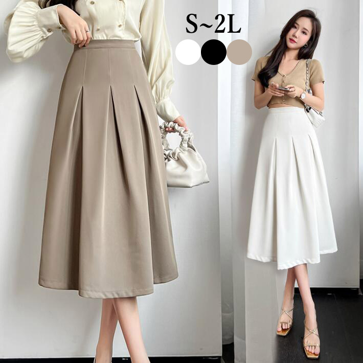 スカートプリーツフレアスカートミモレ丈 ひざ丈 ロング揺れるAライン ハイウエストおしゃれ ボトムスレディース大きいサイズ オフィスOLフォマールSML2L