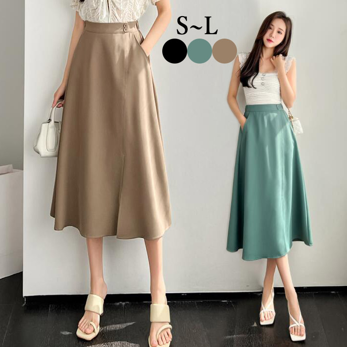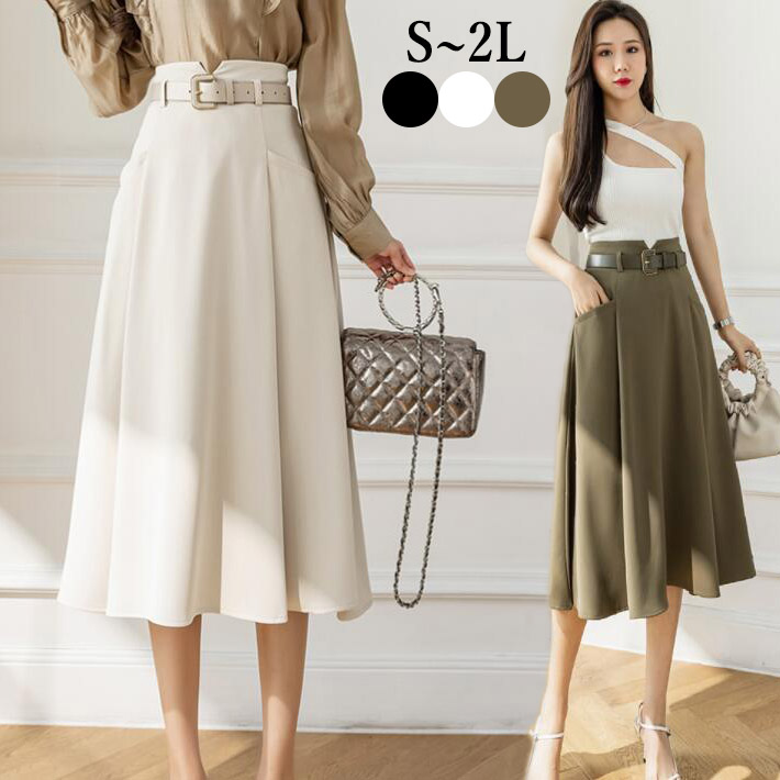スカートレディースフレアスカートミモレ丈 ひざ丈 ロング揺れるAラインポケットおしゃれ ボトムス大きいサイズ オフィスOLフォマールSML2L