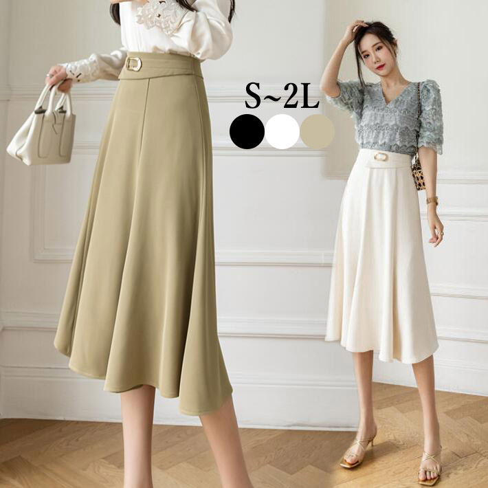 スカートレディースフレアスカートミモレ丈 ひざ丈 ロング揺れるAラインおしゃれ ボトムス大きいサイズ オフィスOLフォマールSML2L