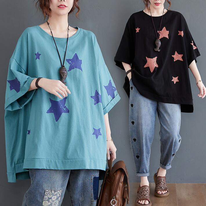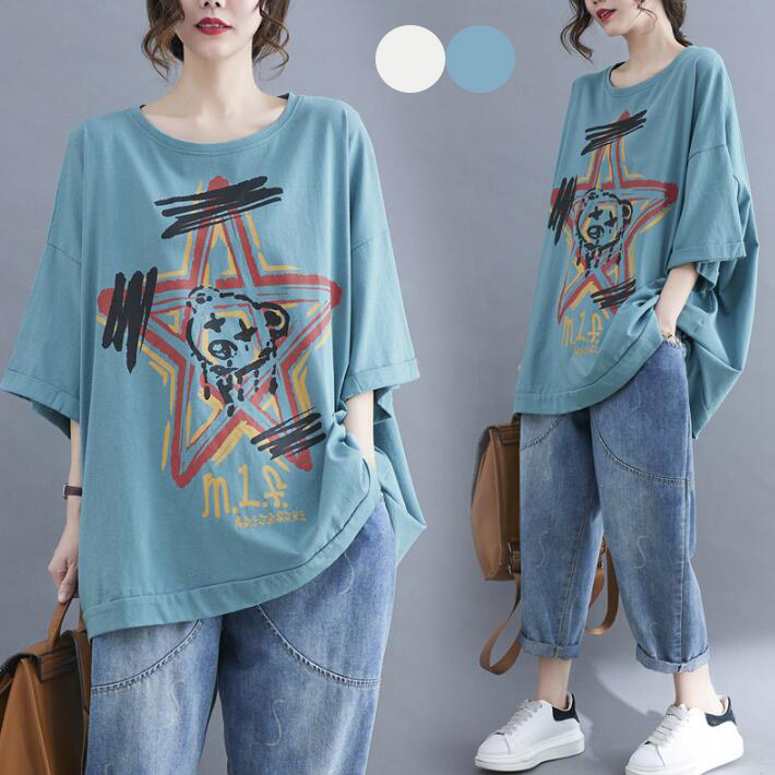 ドルマンTシャツTシャツフィッシュテール 半袖5分袖ドルマン オーバーサイズ レディースロングTシャツコットン星前後差ゆったりTシャツ大きいサイズビッグシルエット体型カバー春夏L2L