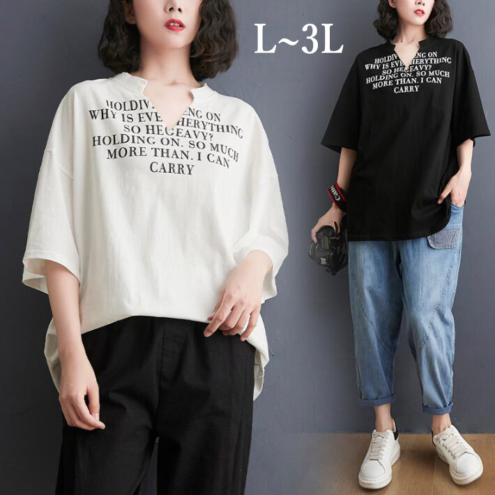 ヘンリーネックTシャツ レディース Tシャツ 半袖 大きいサイズトップスロゴTシャツプリントゆるtシャツゆったり オーバーサイズ ビッグL2L3L
