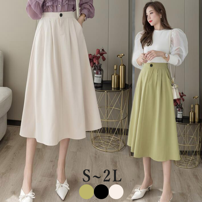 フレアスカートロング ミモレ丈スカートロングスカート春フレアひざ丈 ハイウエストレディース aライン大きいサイズ膝下 ウエストゴム細見えカジュアル夏秋S ML 2L