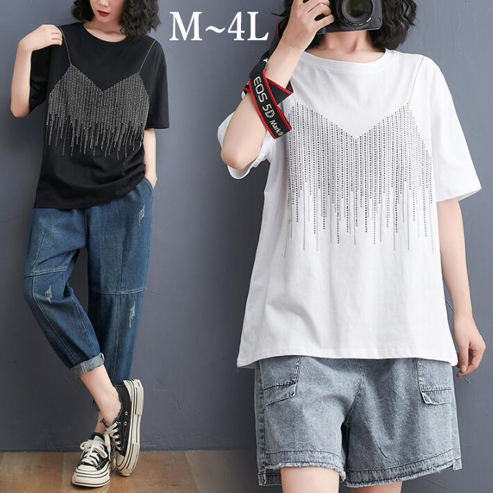 Tシャツトップスキラキラ ファッション レディース 半袖 大きいサイズロングTシャツ 個性的 衣装 春夏ML2L3L4L