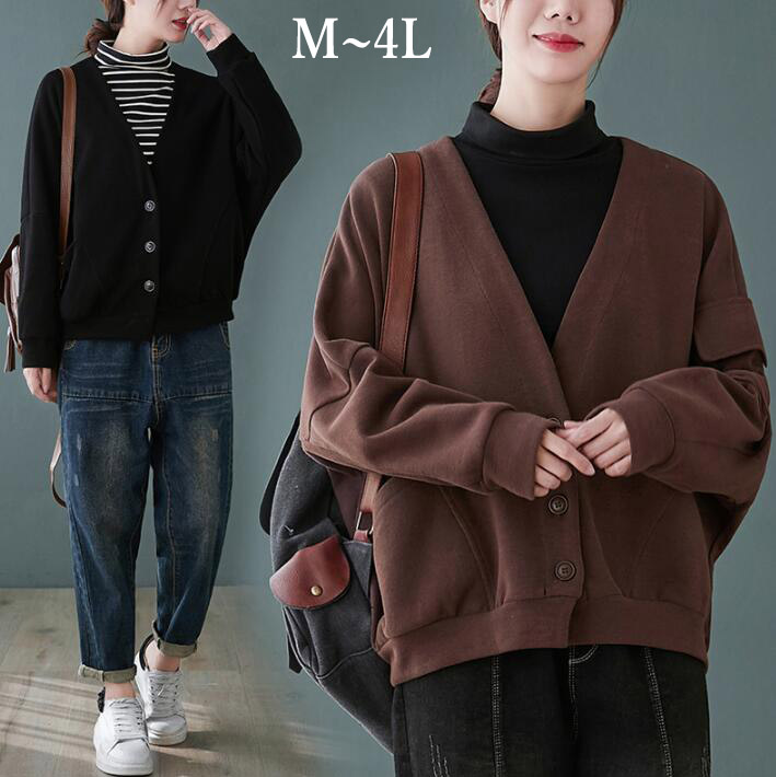 トレーナースウェットコート ライトアウターアウターパーカーコートドルマンVネックジャケットポケット付きレディース長袖 大きいサイズ体型カバーカジュアル春秋ML2L3L