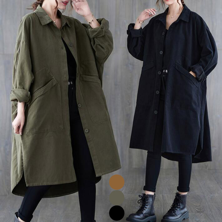 シャツ ジャケットレディースミリタリー アウターオーバーサイズ カバーオール ドロップショルダー 羽織り 前後差ギャザースリット大きいサイズロングコート 春秋