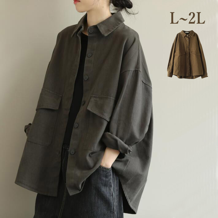ジャケット レディース 大きいサイズアウターシャツジャケットシャツコートライトビッグシルエット オーバーサイズ 春秋L2L