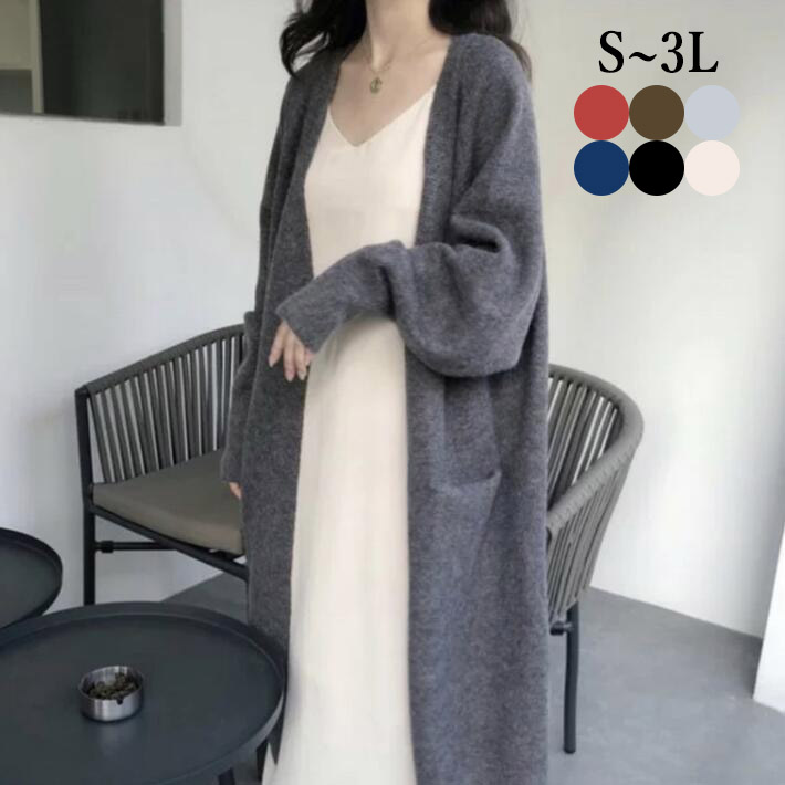 カーディガン レディースニットカーディガン ロングカーディガンアウターニット ゆるニット 洗えるニット ロングカーデ ビッグ カーデ大きいサイズ 無地羽織春秋SML2L3L