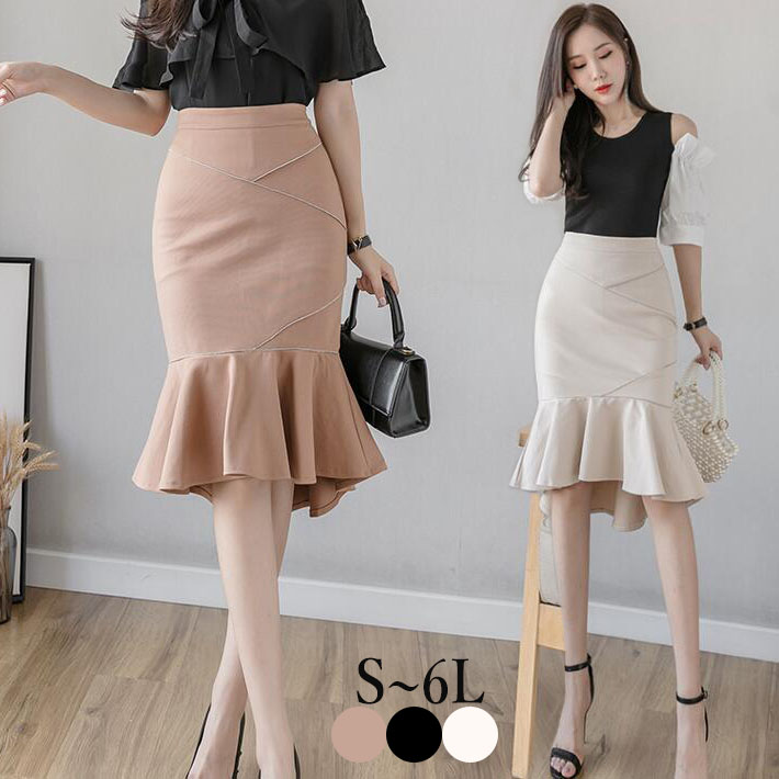 マーメイドスカートロングスカート フィッシュテール前後差タイトスカート人魚スカート膝丈ミディア丈デートフォマール女子会二次会お出かけSML2L3L4L 5L 6L