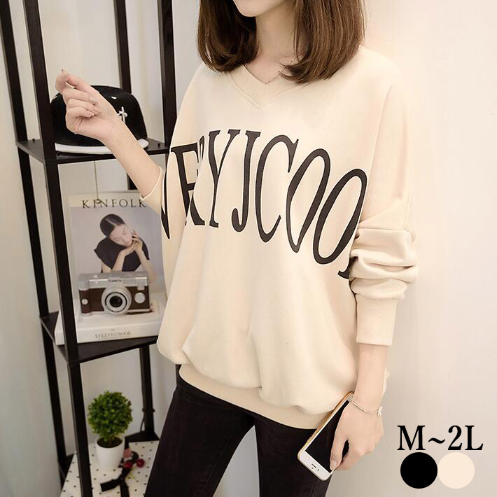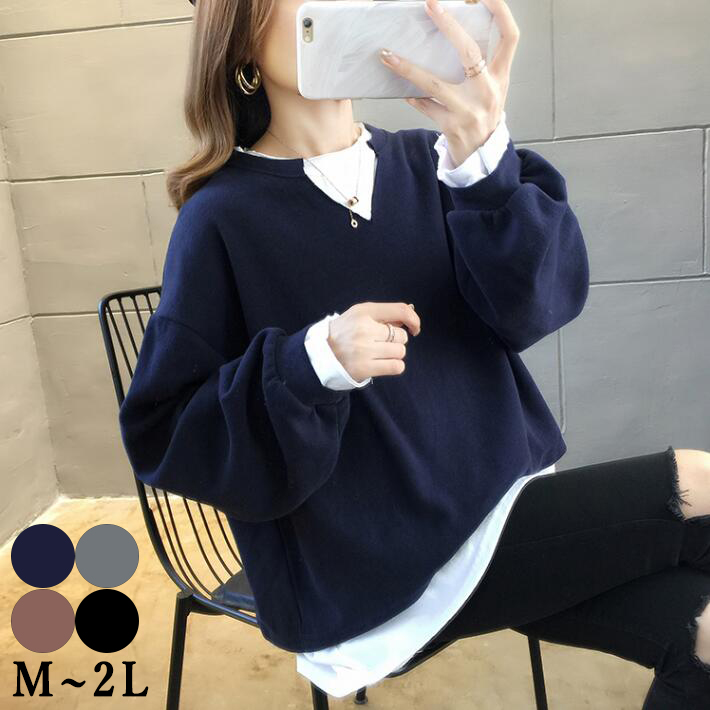 サイトスリット切り替えトレーナースウェットコットンパーカーロゴ トップスレディース長袖 体型カバーゆったりオーバーサイズレディース 無地 春秋ML2L3L