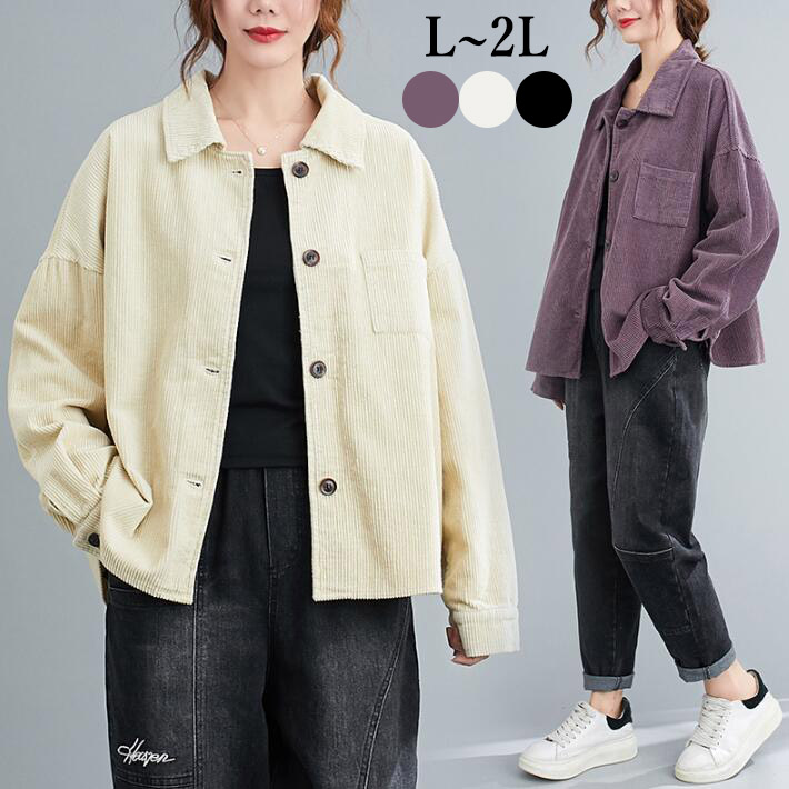 コーデュロイジャケットコーデュロイシャツライトアウタージャケットアウター コーデュロイコート コートショート丈レディースゆったり大きめオーバーサイズ春秋L2L