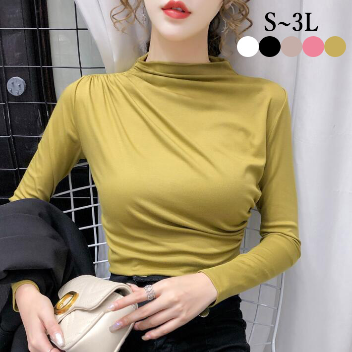 カットソーコットン Tシャツトップスロングタイトレディース長袖 大きいサイズ小さいサイズシンプルフェミニン 無地SML2L3L4L