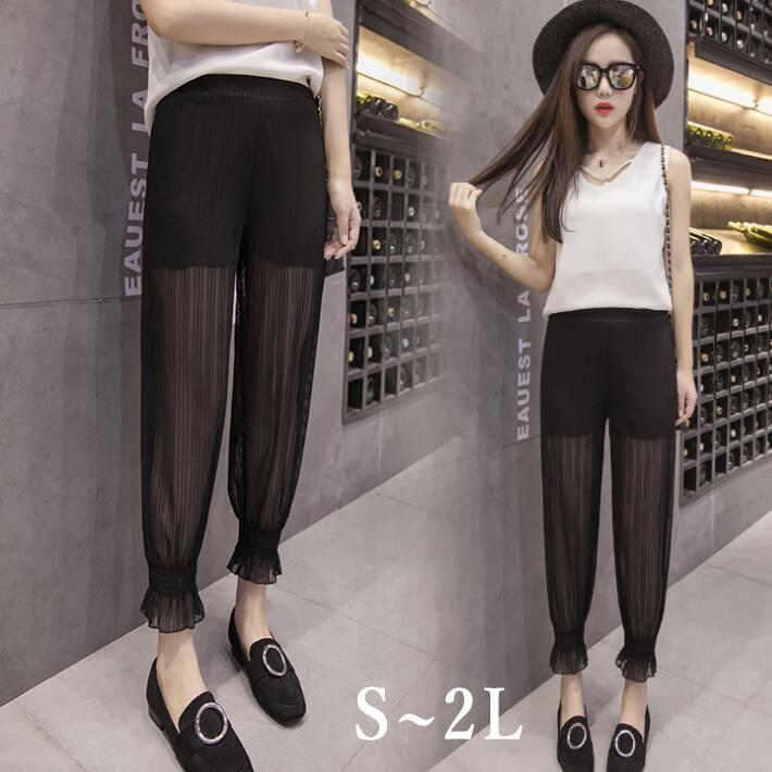 ジョガーパンツバルーンパンツシースルーパンツ シフォンパンツシフォンウエストゴムパンツ ストライプ透けゆるカジ9分丈美脚レディースハイウエスト きれいめ大きいサイズSM L2L