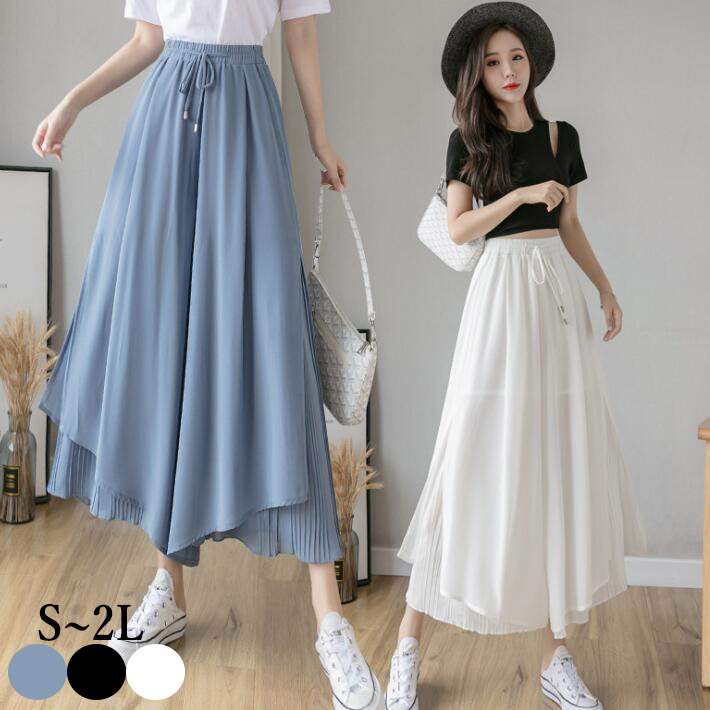 スカーチョプリーツスカーチョシフォンワイドパンツ ガウチョパンツ ロング プリーツミモレ丈スカート レディースパンツスカート風 美脚 体型カバーデート 女子会SML2L