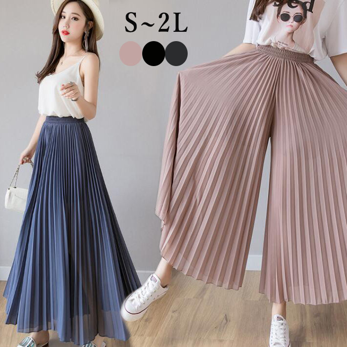 プリーツスカーチョ スカーチョワイドパンツ ガウチョパンツ ロング プリーツミモレ丈スカート レディースパンツスカート風 美脚 体型カバーデート 女子会フォマールSML2L