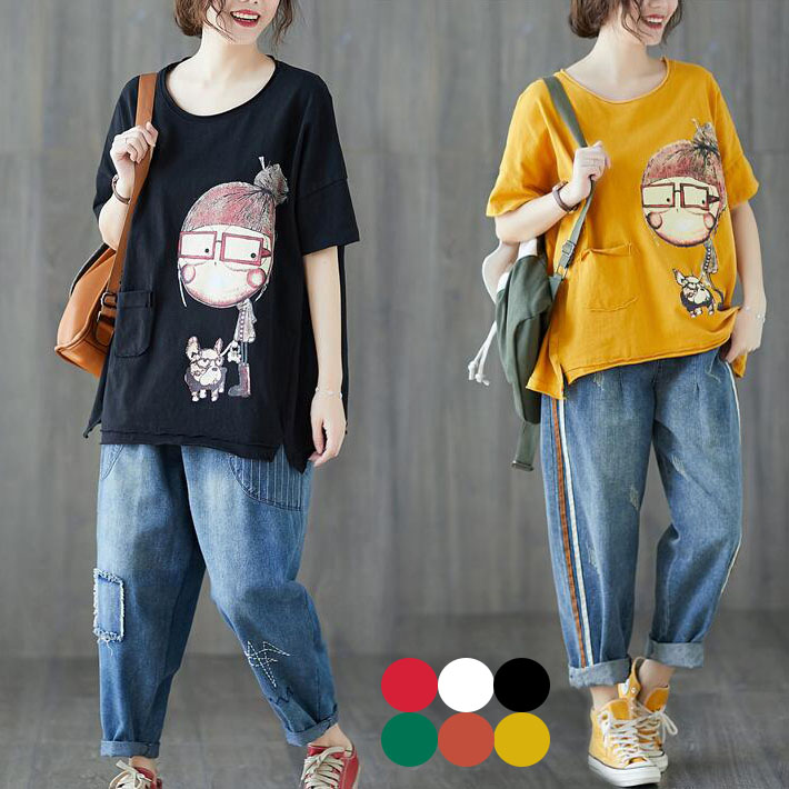ドルマンTシャツTシャツフィッシュテールロゴドルマンTシャツオーバーサイズ ゆったりTシャツ Tシャツチュニックカットソーロゴプリント半袖 大きいサイズUネックビッグシルエット夏