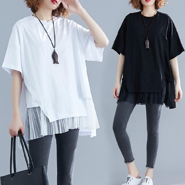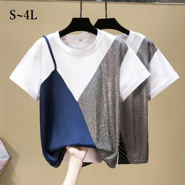 TシャツレースTシャツ 切り替えレース切り替Tシャツキラキラオーバーサイズ ゆったりTシャツ 7分袖半袖ロング 大きいサイズクルーネックビッグシルエット体型カバー