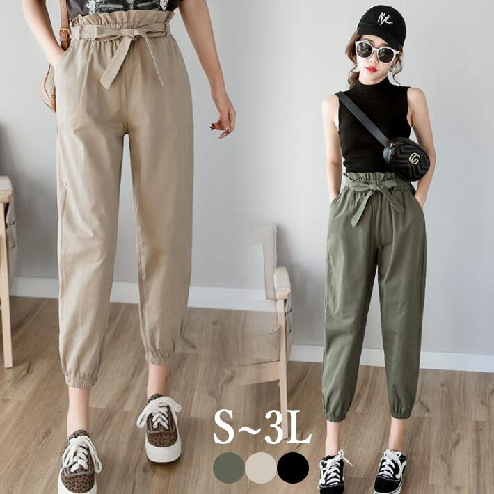 ジョガーパンツサルエルパンツチノパンサルエル ストレッチ ウエストゴムパンツカジュアル ゆるカジ9分丈 美脚レディースハイウエストリボン きれいめ大きいサイズ 23