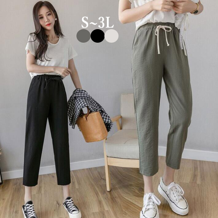 ジョガーパンツリネンパンツ コットンパンツ パンツ9分丈 美脚レディースボトムス ウエストゴム きれいめ大きいサイズ薄手春夏SM L2L3L