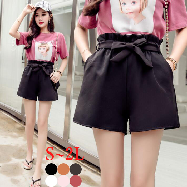 ショートパンツミニパンツショーパンシフォンリボンフリル ミニ丈 ショート丈パンツスウェットきれいめ ウェストゴムカジュアル すっきり可愛いSML2L