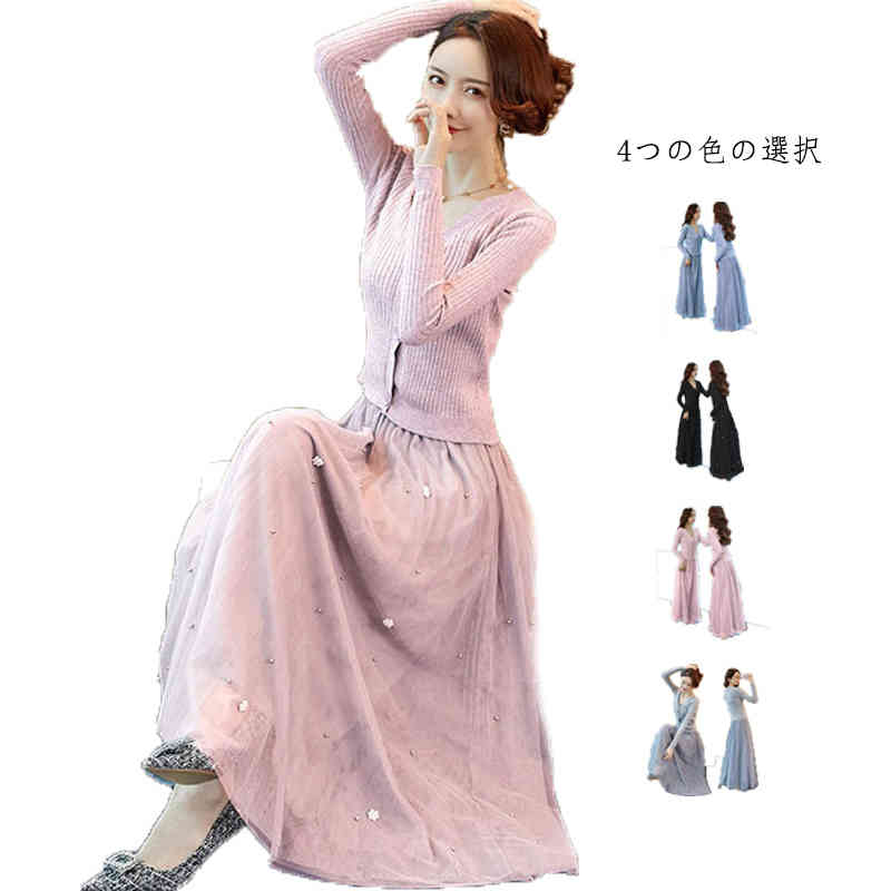 レディース スカート ロングスカート レーススカート チュール 春秋 大人 春夏 フレアスカート マキシ