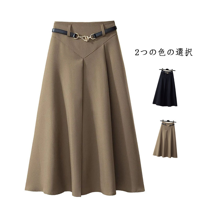 高見え フレアスカート レディース 春夏秋 オフィス カジュアル ロングスカート フレア ライン ハイウエスト