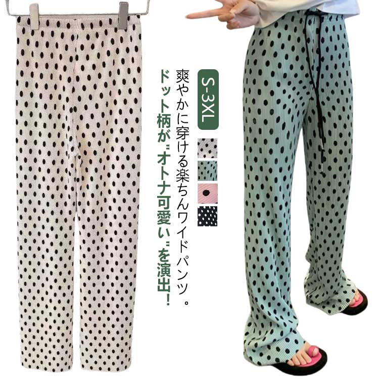 プリーツワイドパンツ レディース 春夏 ワイドパンツ ドット柄 水玉 パンツ ロングパンツ ゆったり リラックス 総柄 イージーパンツ おしゃれ 夏 大人 可愛い