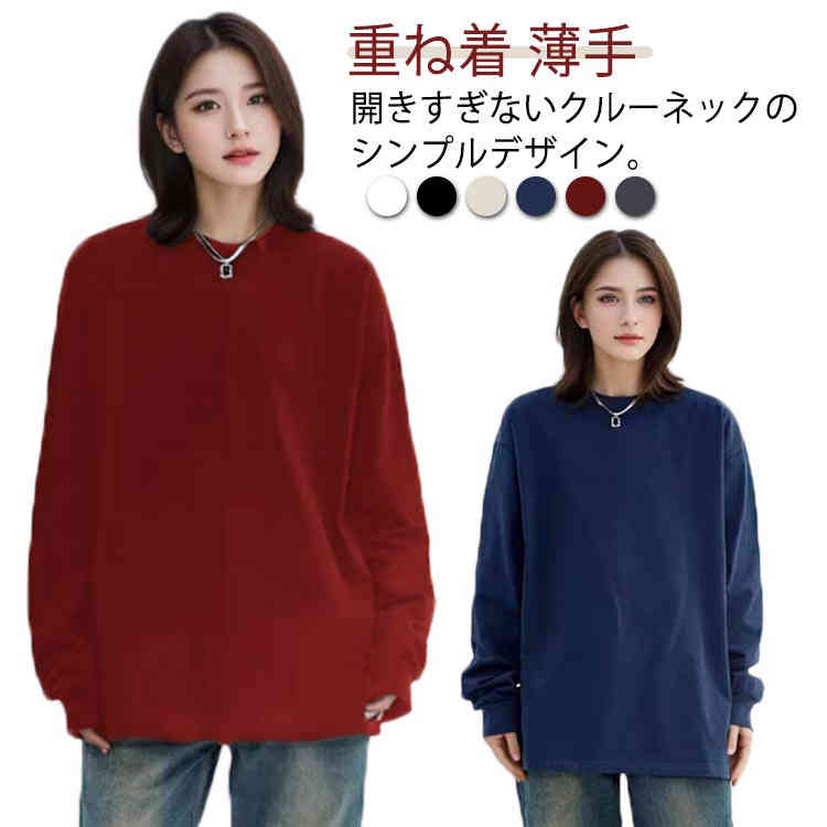 Tシャツ トップス シンプル 長袖 無地 薄手 カジュアル 春秋 ロングTシャツ おしゃれ クルーネック インナー 重ね着 着回し レディース