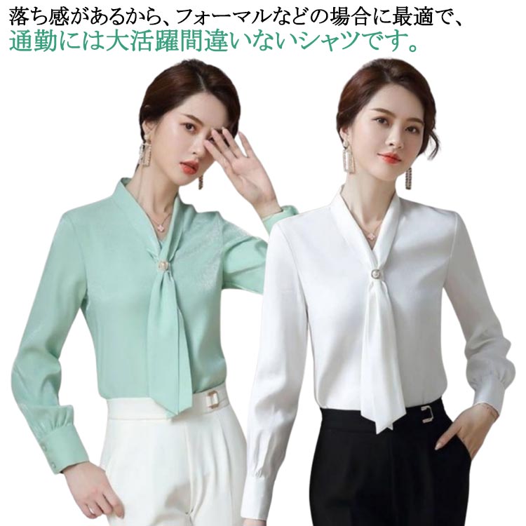 シフォンブラウス オフィスカジュアル 長袖 ブラウス シフォン ブラウス シャツ ボウタイブラウス 白 ホワイト
