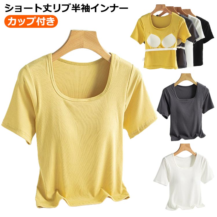 カップ付き 半袖 シャツ カットソー 半袖シャツ レディース ショート丈 クロップド丈レディースファッション トップス シャツ カットソー