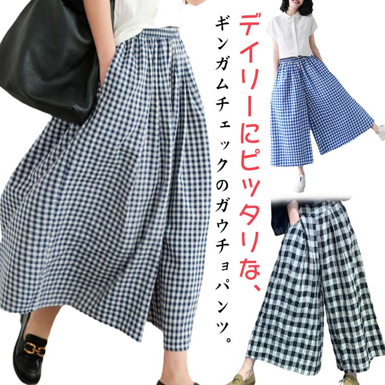 ワイドパンツ パンツ レディース ワイド チェック ゆったり 体型カバー ガウチョパンツレディースファッション ボトムス パンツ