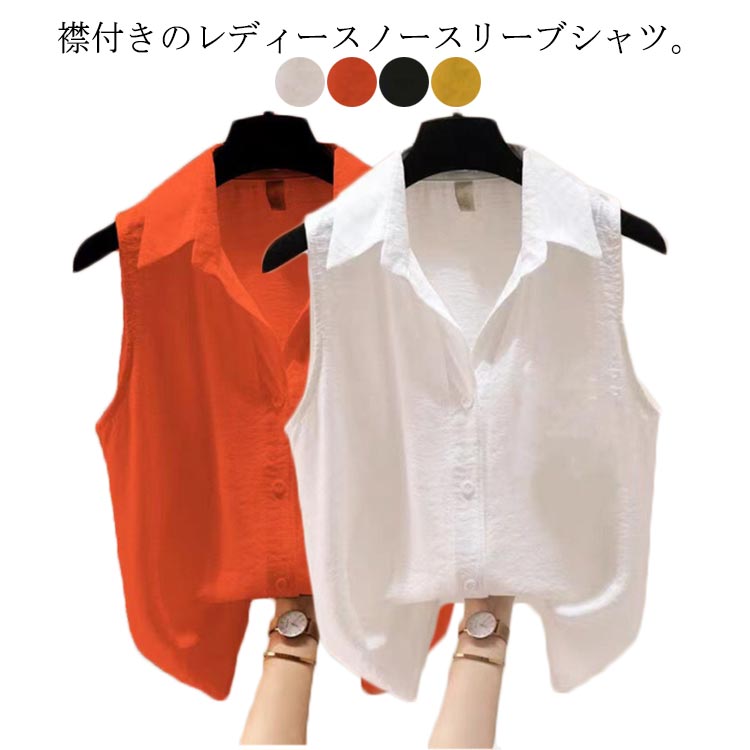 シャツ トップス ノースリーブ ブラウス 開襟 襟付き レディース 春夏 無地レディースファッション トップス シャツ ブラウス