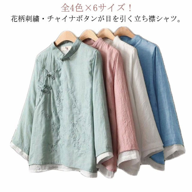 シャツ レディース チャイナ服 ブラウス 長袖 トップス 刺繍 チャイナボタン 立ち襟 春 秋レディースファッション トップス シャツ ブラウス