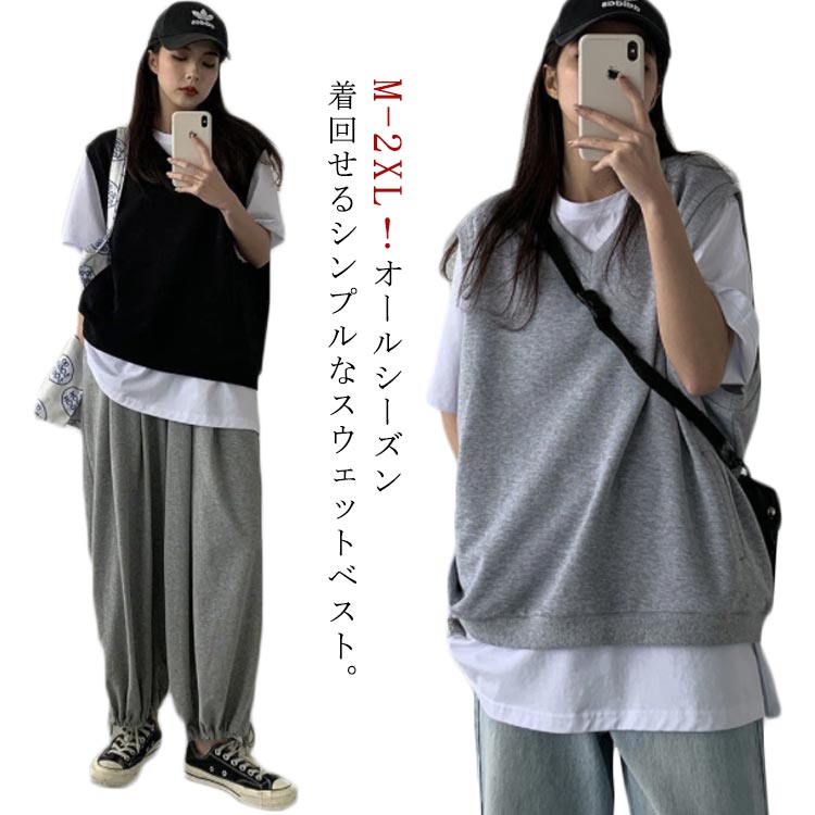 ノースリーブ Vネック スウェットベスト トップス 袖なし 学生 プルオーバー カットソーベスト レディース