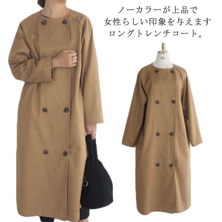 ノーカラー レディース 上着 トレンチコート コート ジャケット スプリングコート アウター 春服 ロング丈コート