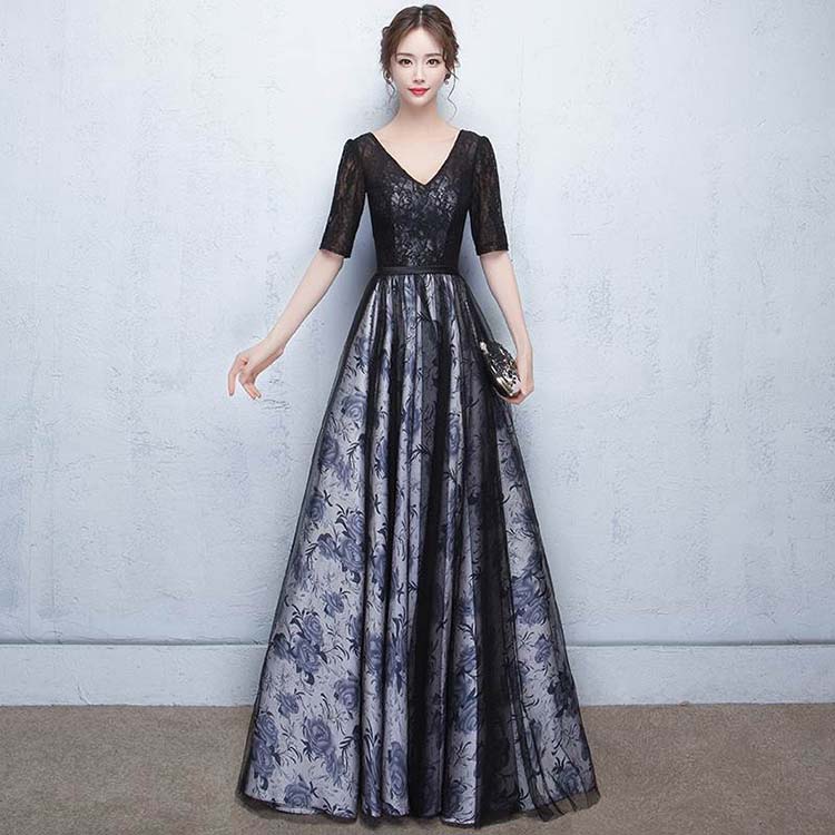ドレス 大人 ピアノ 発表会 大きいサイズ 結婚式 vネック 背出し 編み上げタイプ セクシー 花柄 総柄 チュール ワンピース 夏 レディース きれいめ 半袖 ロング 五分袖 着地式
