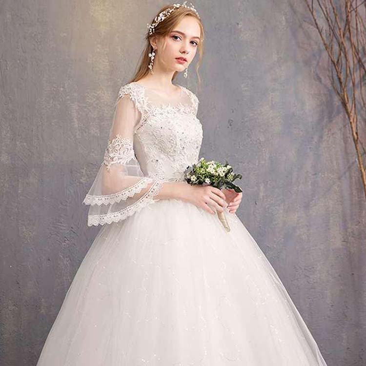 ウェディングドレス 袖あり ボレロ ドレス 大人 結婚式 大きいサイズ ワンピース 夏 レディース きれいめ 半袖 ロング ボートネック 着地式 セクシー 花柄 総柄 刺繍 演奏会