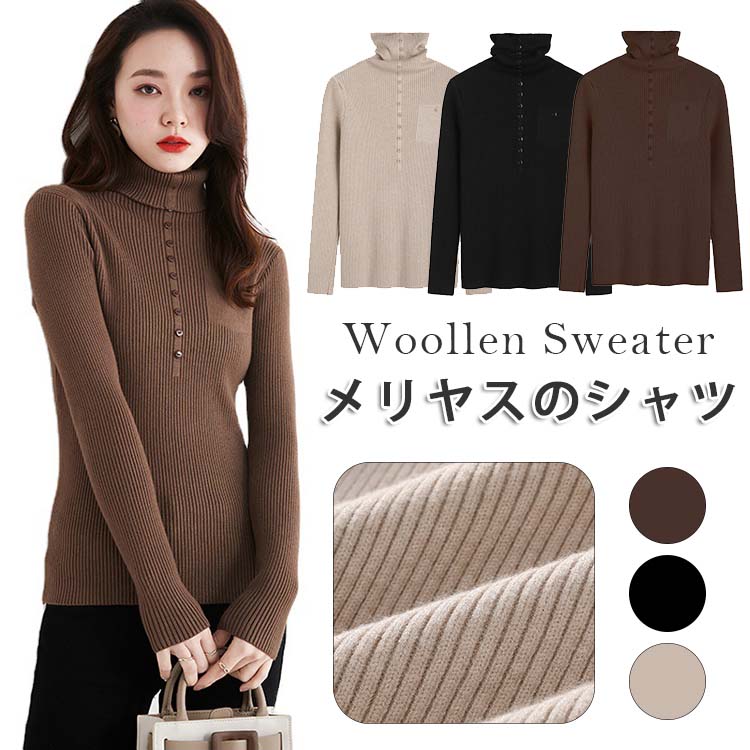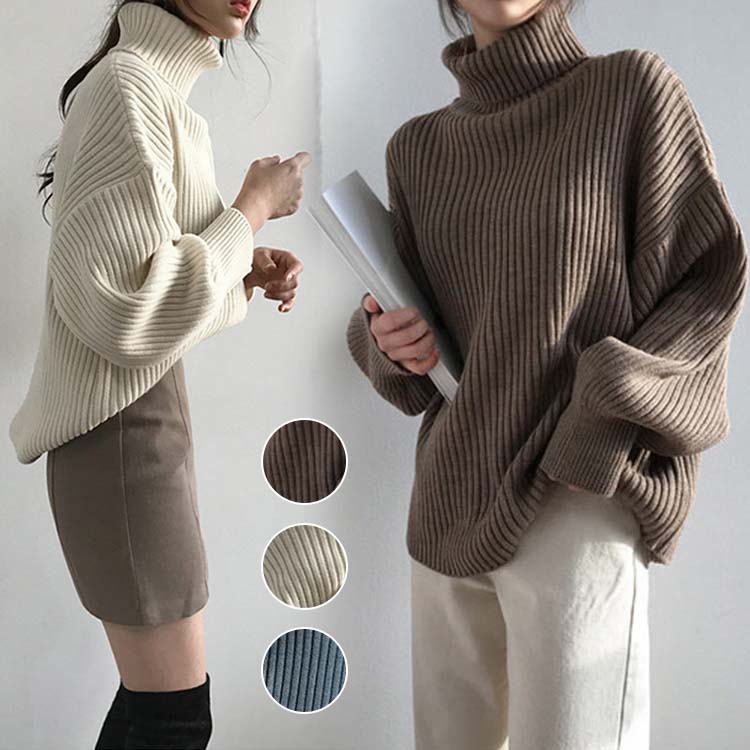 レディース ニット セーター 秋冬 長袖 ワンサイズ フェミニン 韓国風 洗える 小顔 トップス 着痩せ 無地 タートルネック 可愛い シンプル おしゃれ レディース