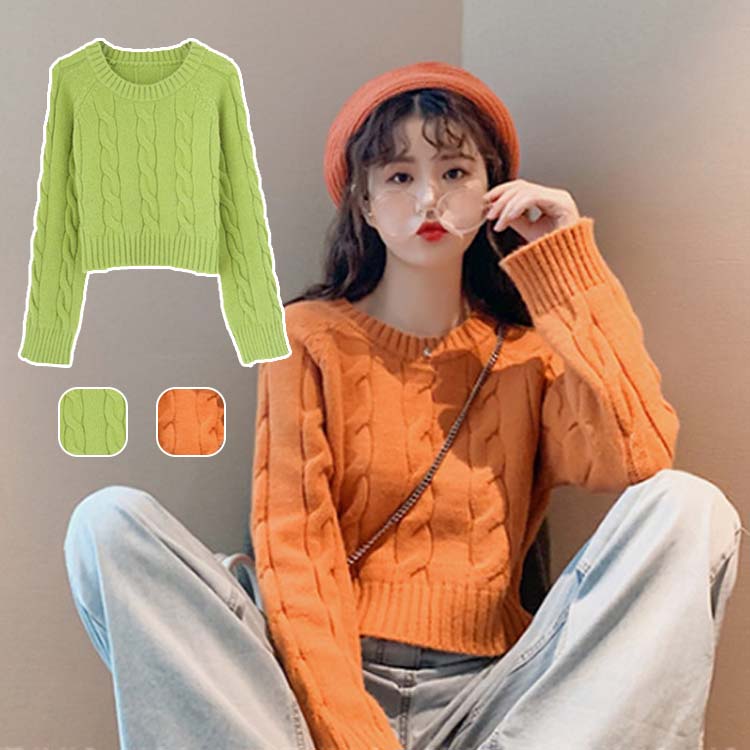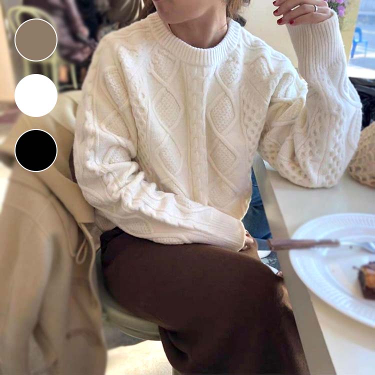 レディース ニットセーター 秋冬 トップス レディース 長袖 ケーブル編み おしゃれ シンプル 着痩せ ラウンドネック カジュアル 可愛い 春秋冬 小顔 全3色