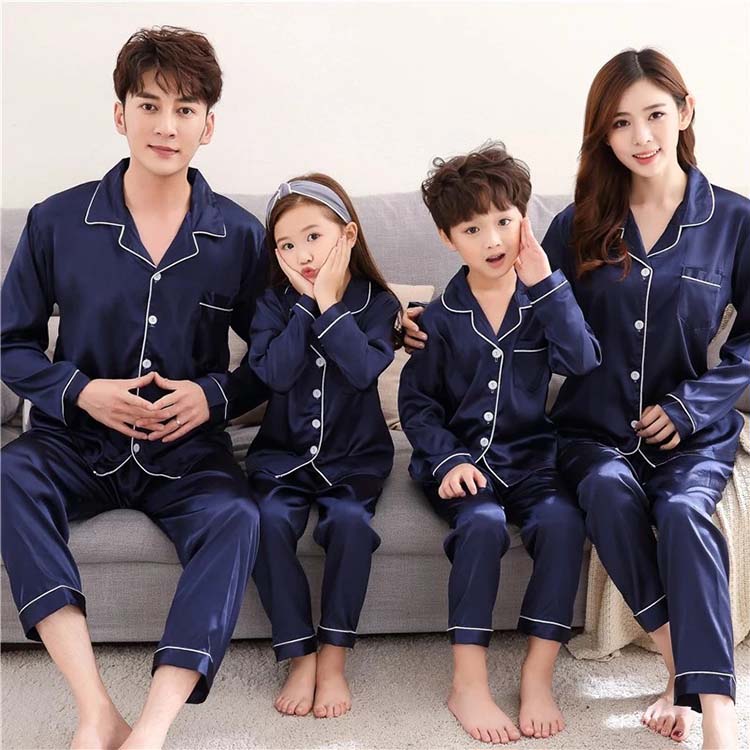 パジャマ 親子ペア 親子コーデ トップス ズボン 親子 ペアルック 長袖 ロング丈 前ボタン シンプル レーヨン 家族 お揃い パパ ママ 子供 キッズ 姉妹 兄弟