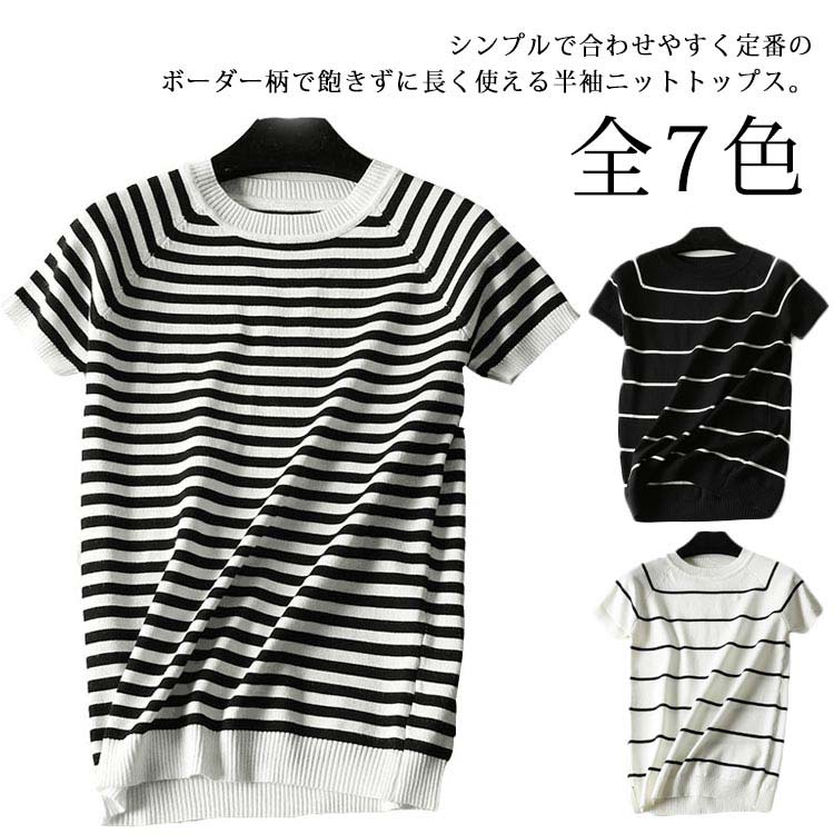 サマーニット レディース ストレッチ シャツ 半袖 カットソー 春 ニットトップス こなれレディースファッション トップス シャツ カットソー