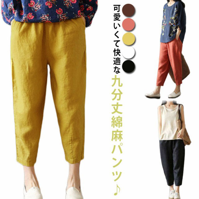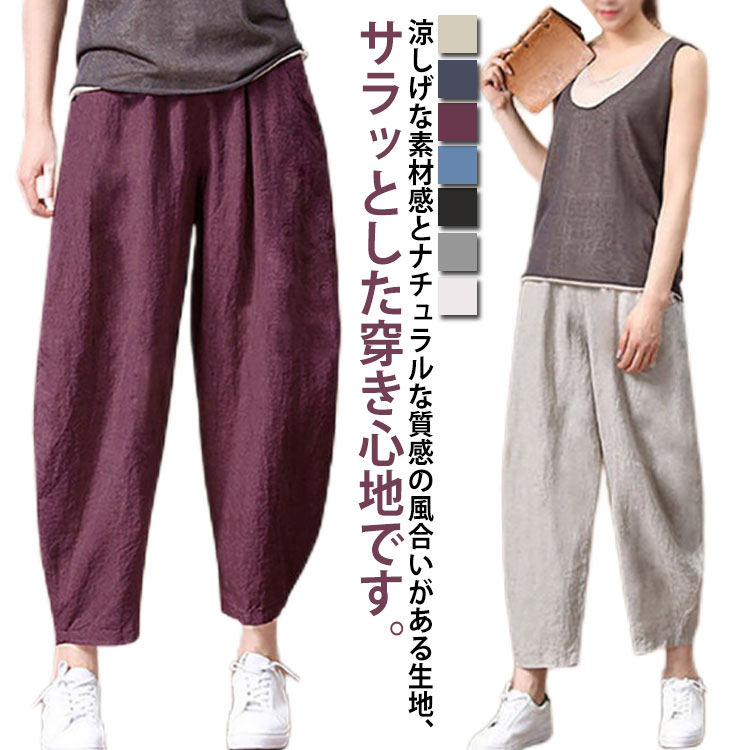 春夏 レディース 綿麻 大きいサイズ リネン 九分丈 クロップドパンツ サルエルパンツ コッレディースファッション ボトムス パンツ
