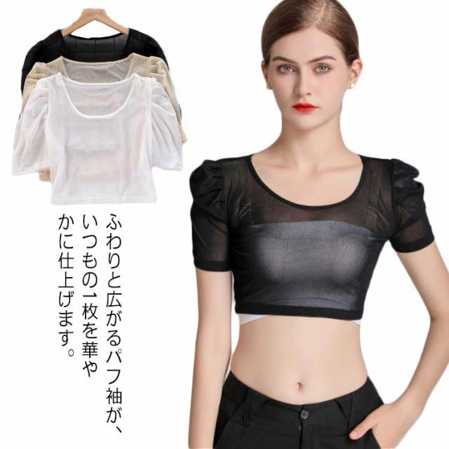 二の腕を隠す ボリュウーム袖 ノースリーブ つけ袖 インナーシャツ 透け感 体型カバー ブラレディースファッション トップス その他
