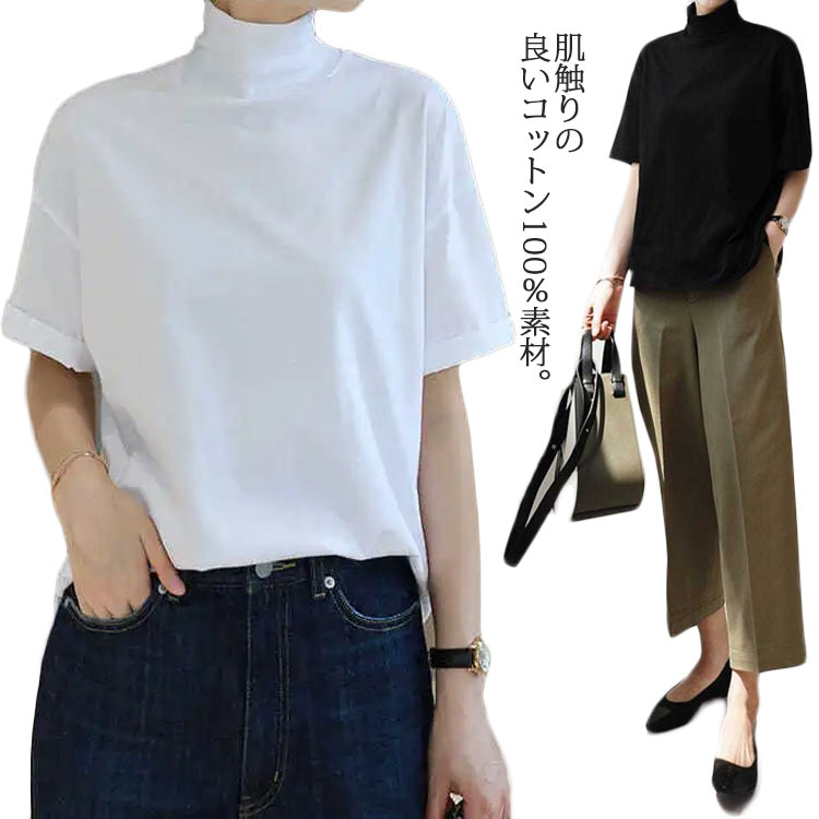 ハイネックカットソー レディース ハイネックカットソー ハイネック 五分袖 タートルネックレディースファッション トップス シャツ カットソー