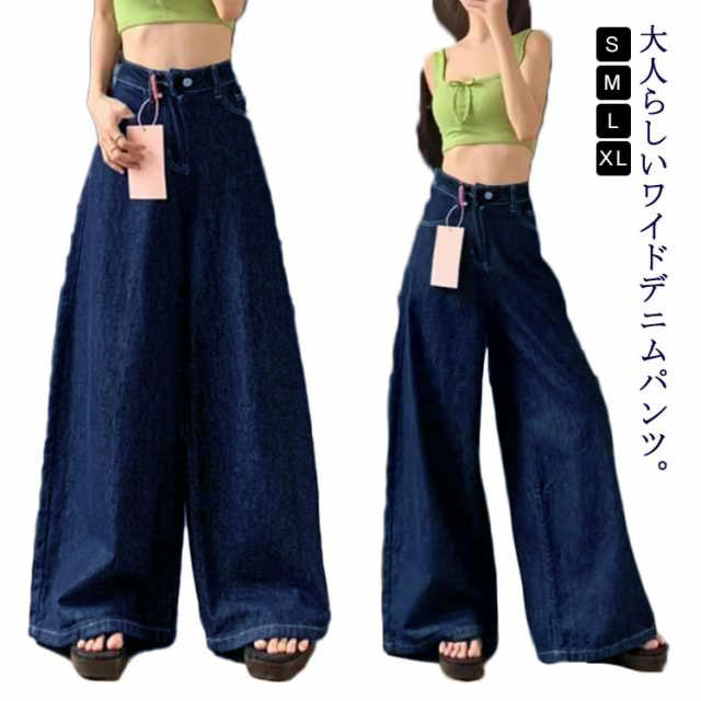 脚長デニムパンツ ルーズ ジーンズ ワイドパンツ デニム ワイドパンツ ハイウエスト デニム ワイドパンツ 秋冬 ワイドデニム