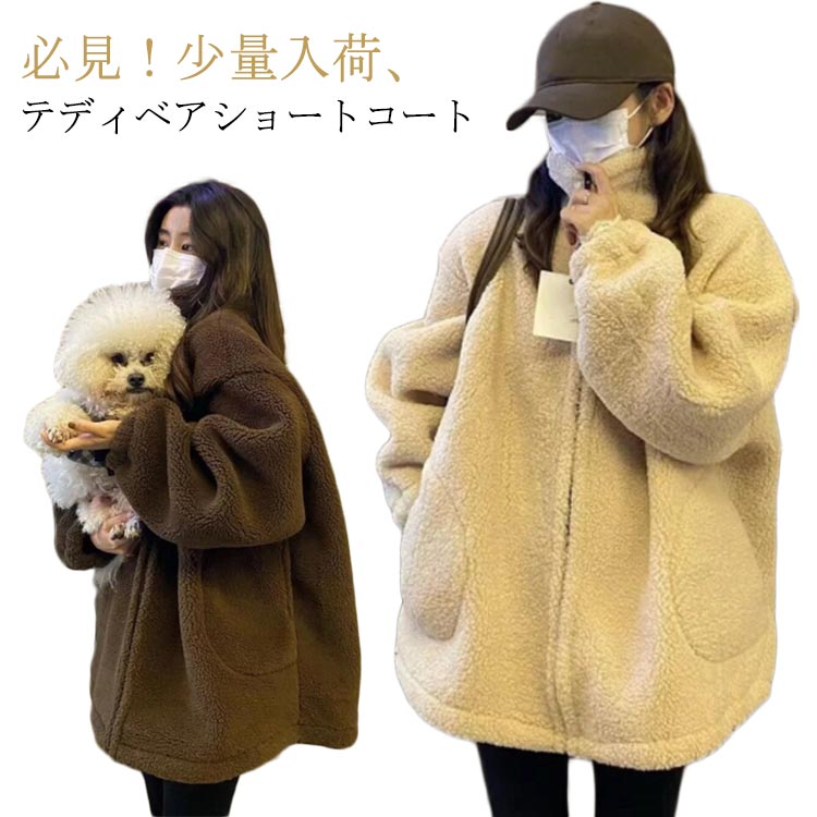 上まで閉めると首元もあったか スタンドカラー ボア ブルゾン ジャケット コート フェイク シープボア コート アウター 秋冬 ビッグサイズ おしゃれ 抜け感