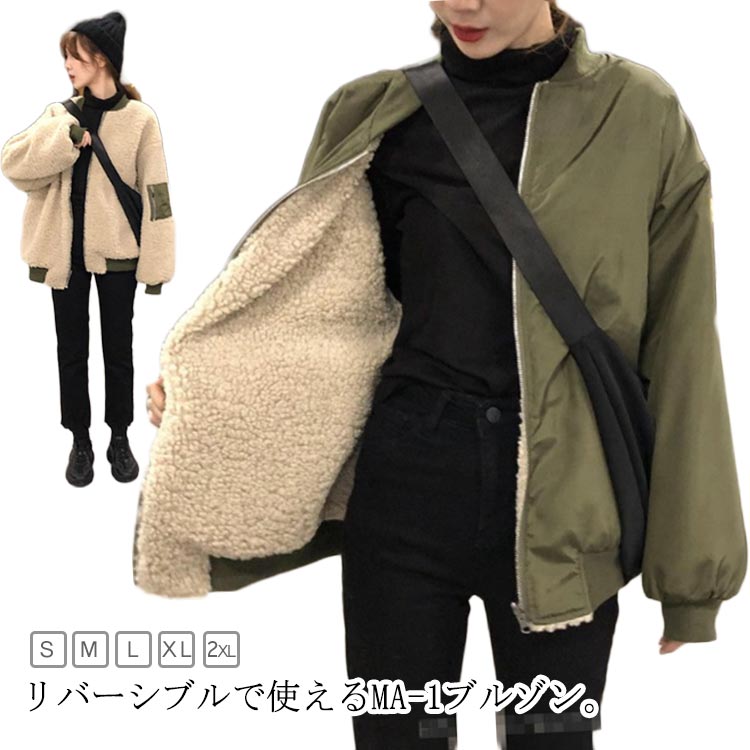 表も裏も着用できる2WAY ブルゾン MA-1 暖かい フライトジャケット ミリタリージャケット ボアジャケット ボアブルゾン 上着 オーバーサイズ ビッグシルエット コート