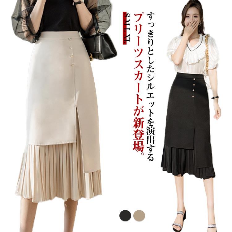 スカート レディース プリーツスカート 裏地フリーツ ミモレ丈 切り替え アシンメレディースファッション ボトムス スカート