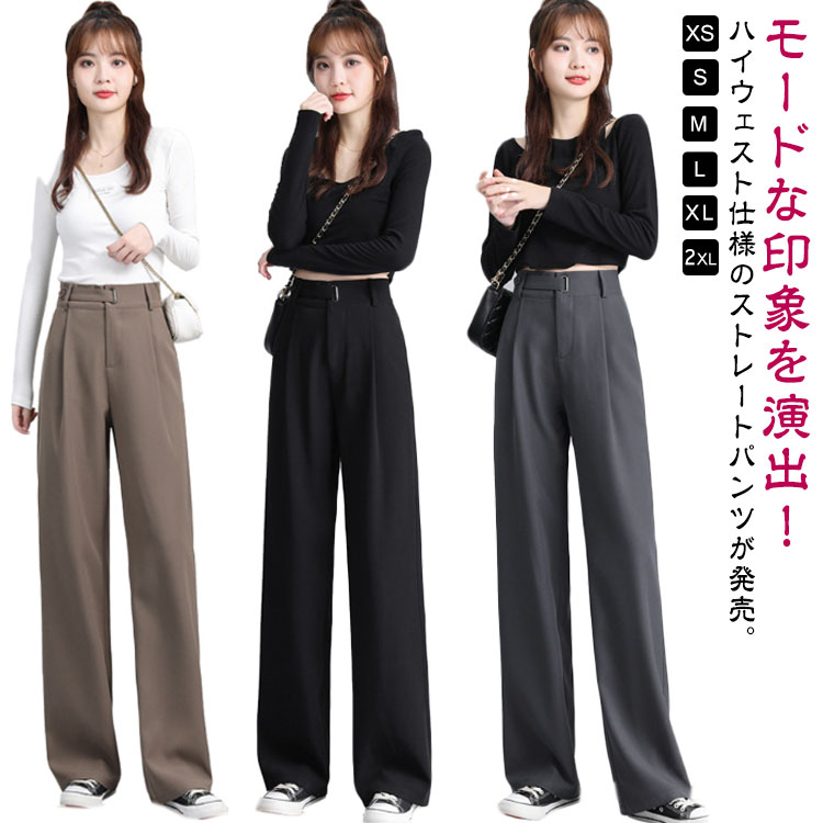 ワイドパンツ レディース ハイウエスト 美脚 脚長 ストレートパンツ ボトムス ワレディースファッション ボトムス パンツ